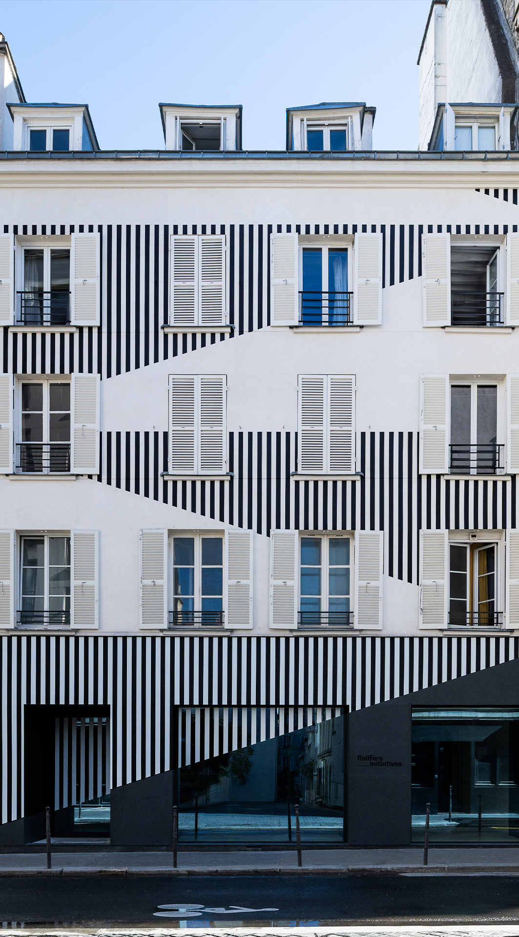 Un nouveau travail in situ de Daniel Buren s’installe dans l’espace public parisien. Conçu spécialement à la demande de Reiffers Initiatives pour célébrer les cinq ans de son programme de mentorat, ce travail vient prendre place dans le cadre du réaménagement global de la rue des Acacias.