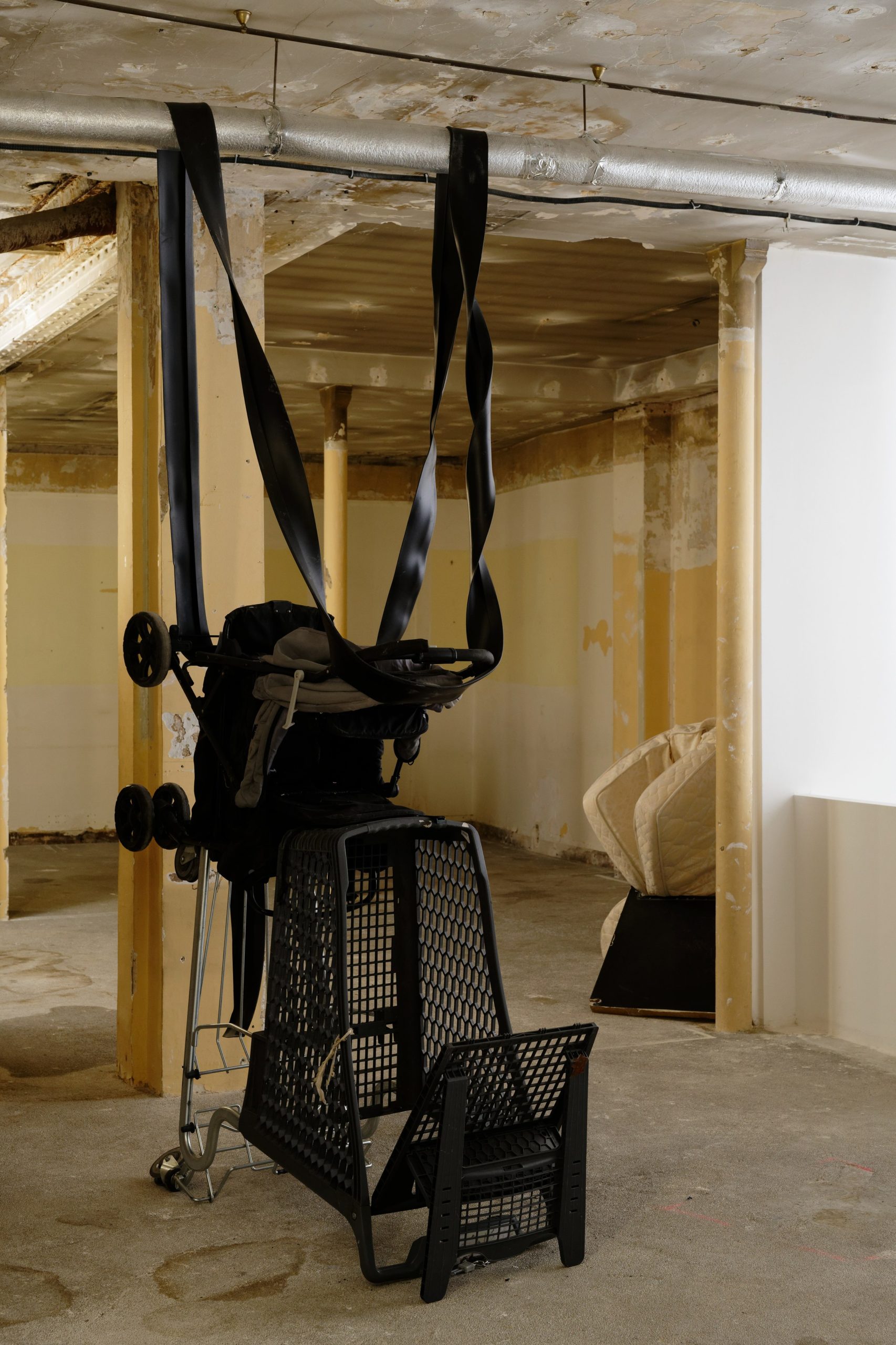 Du geste retiré à la capture reste autant de mues, composées de caddies et poteaux, baignoires et troncs d’arbres, dont chaque élément entretient, le temps de l’exposition, une conversation secrète, murmurant de leur langage d’artefacts mis au rebus des narrations éphémères et charnelles, tout en déployant un opéra de choses à parts égales tragique et comique".