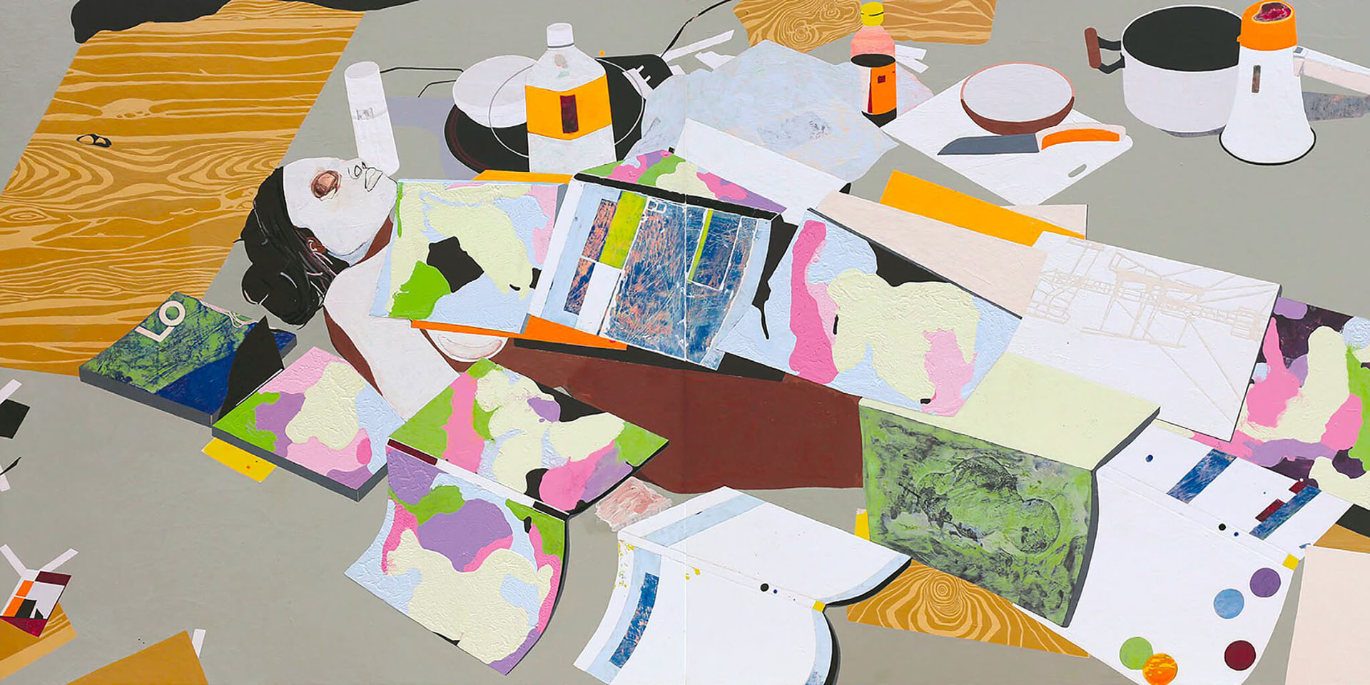 Puisant dans l’abondance que procure le flux internet, en résidence depuis quelques semaines à la maison SNCF, l’artiste reproduit tout d’abord les images trouvées sur des contreplaqués carrés de 120 cm, avec tout le luxe des détails que procurent ces microcosmes dans lequel ces jeunes se trouvent. À un détail près toutefois, car c’est elle qu’elle transpose dans ces scènes.