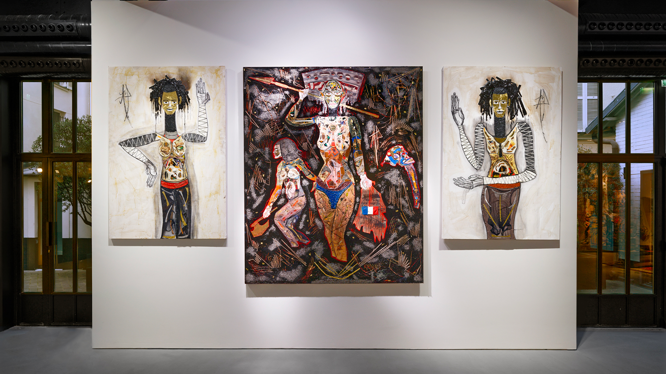 Pour la seconde édition de son programme de mentorat, Reiffers Art Initiatives a présenté l’exposition « La prochaine fois, le feu » du jeune artiste Alexandre Diop, accompagné de son mentor Kehinde Wiley, célèbre artiste américain et portraitiste de Barack Obama. Né à Paris et vivant à Vienne, Alexandre Diop est un jeune artiste pluridisciplinaire franco-sénégalais dont la démarche artistique est guidée par l’expérimentation et l’observation historique de nos sociétés. Son approche singulière se situe entre la peinture et la sculpture, utilisant des objets du quotidien tels que des livres, des photographies, du métal et du bois, ainsi que du feu et d’autres éléments ou matériaux comme la rouille et les poils d’animaux. Son travail a déjà été exposé à l’international, notamment en Autriche, en Italie et aux États-Unis d’Amérique. En décembre 2022, la collection Rubell lui a consacré une exposition lors d’Art Basel Miami.
