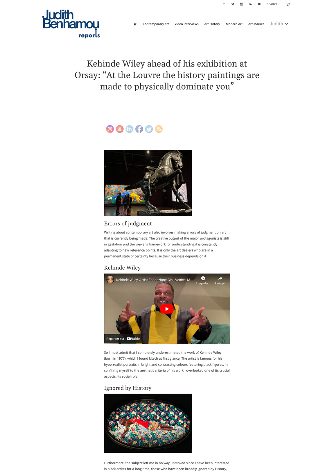 Kehinde Wiley ahead of his exhibition at Orsay: "At the Louvre the history paintings are made to physically dominate you"