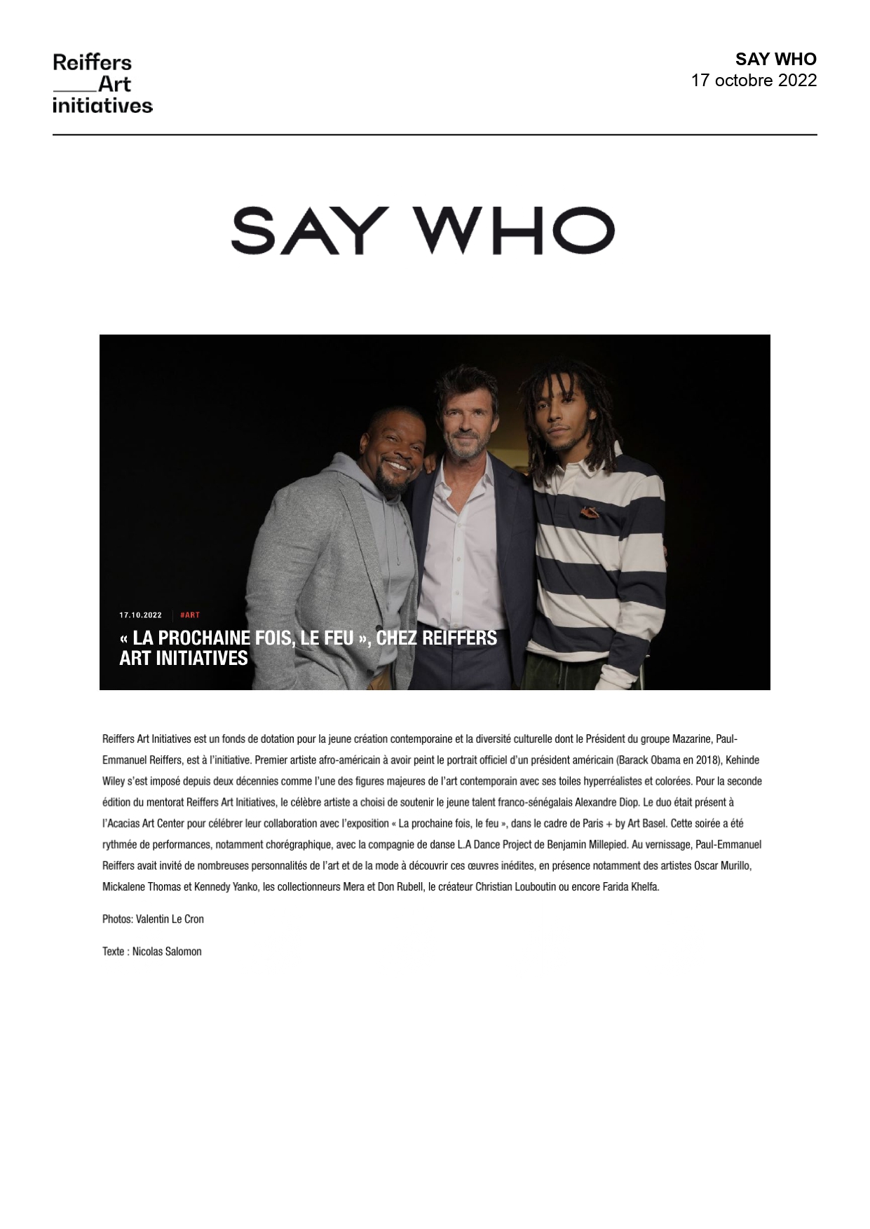 "LA PROCHAINE FOIS, LE FEU", chez Reiffers Art Initiatives