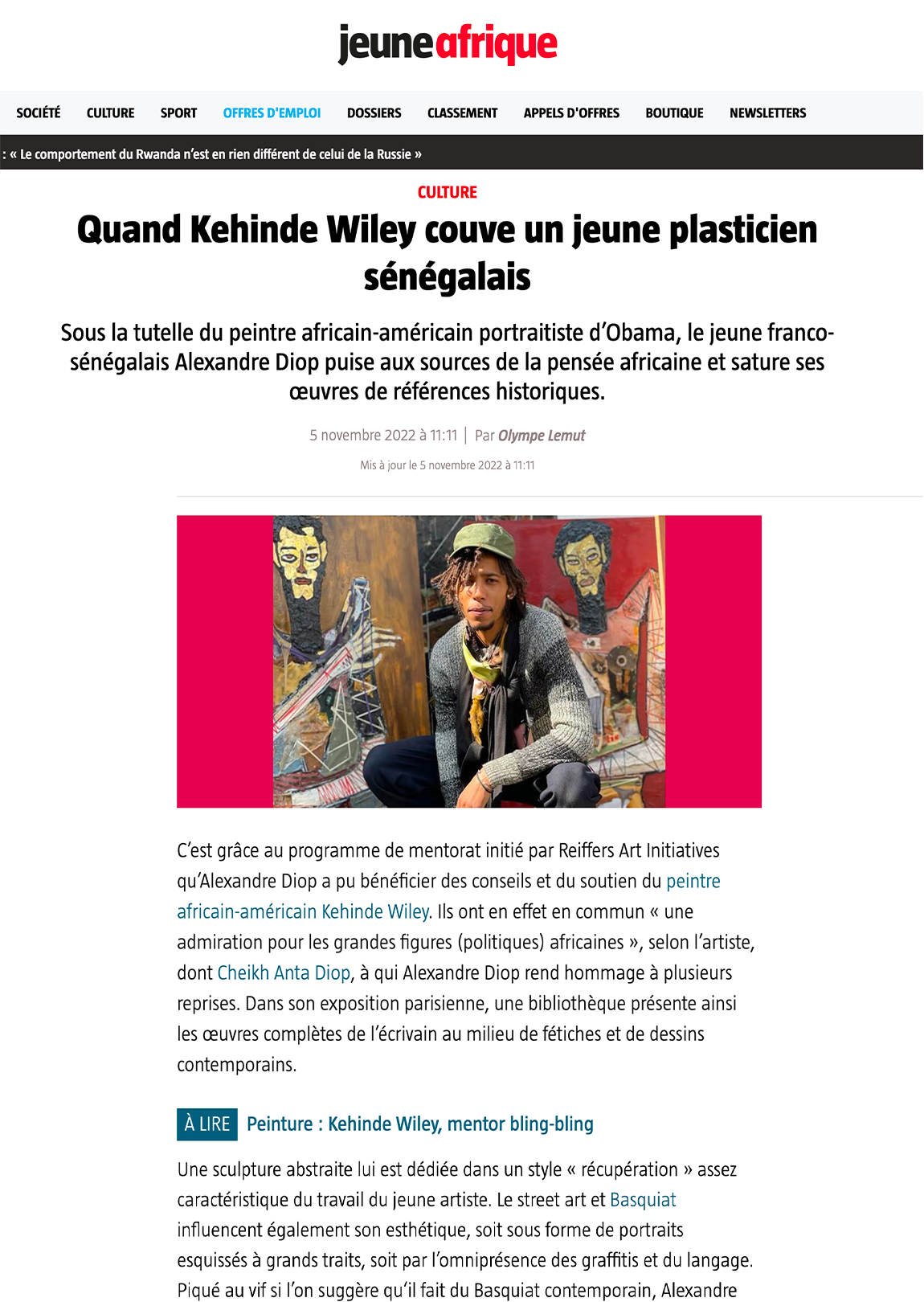 Quand Kehinde Wiley couve un jeune plasticien sénégalais