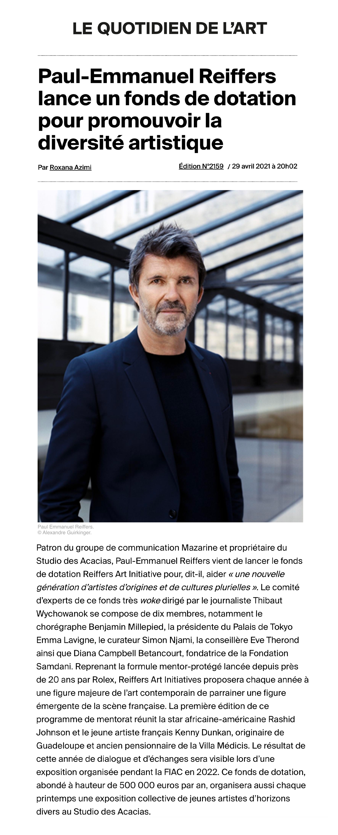 Paul-Emmanuel Reiffers lance un fonds de dotation pour promouvoir la diversité artistique