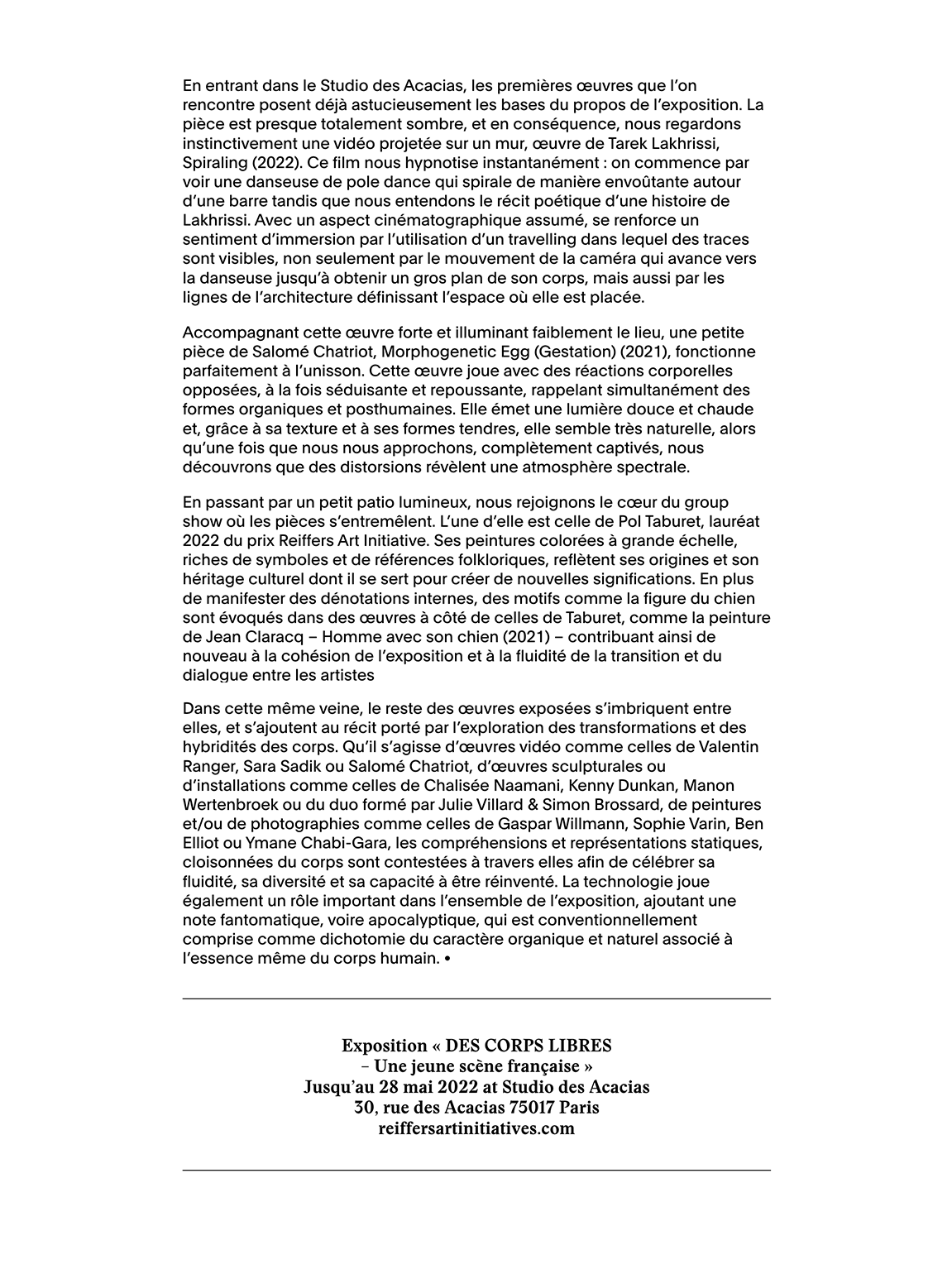 « Des Corps Libres » s’exposent au Studio des Acacias