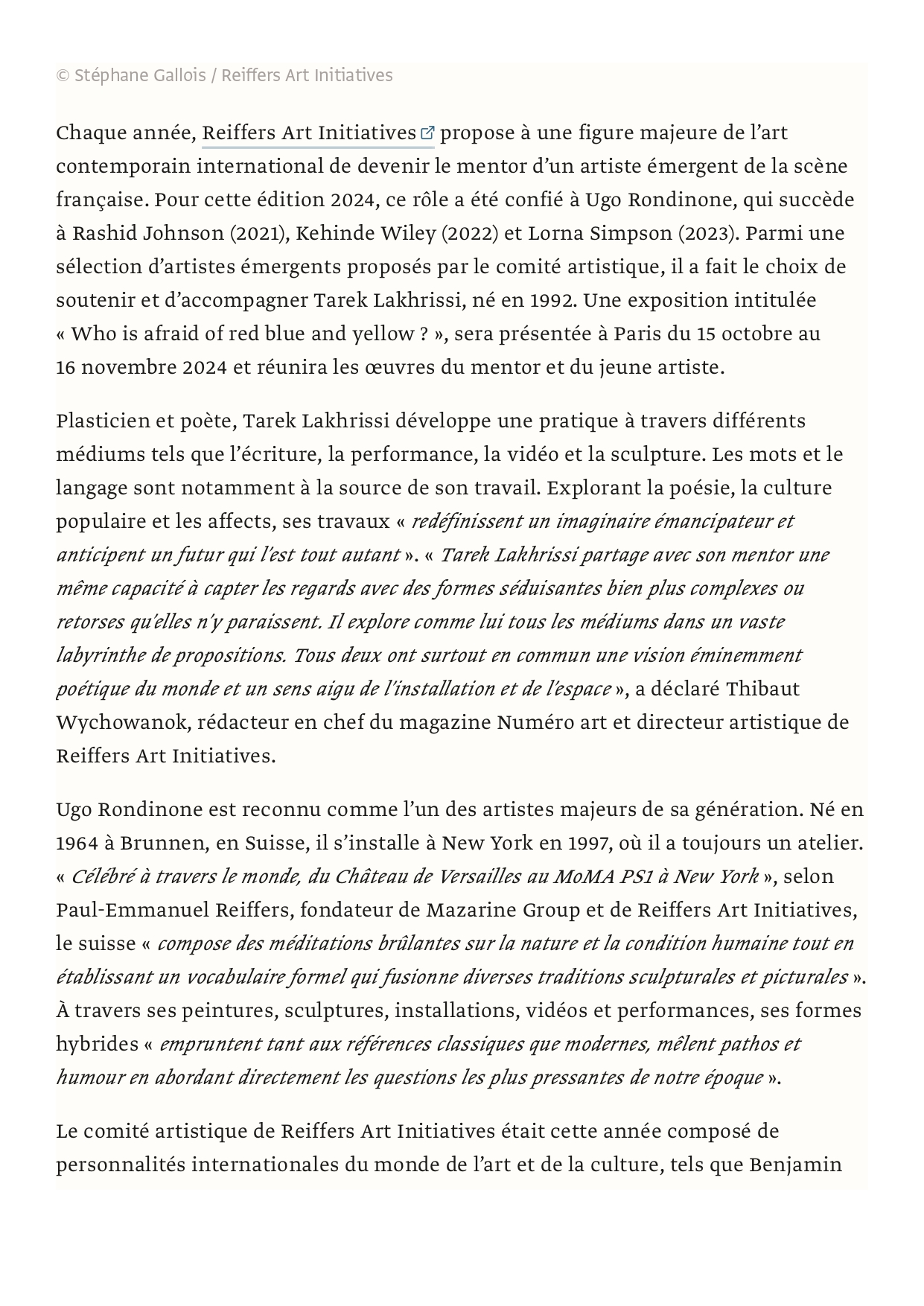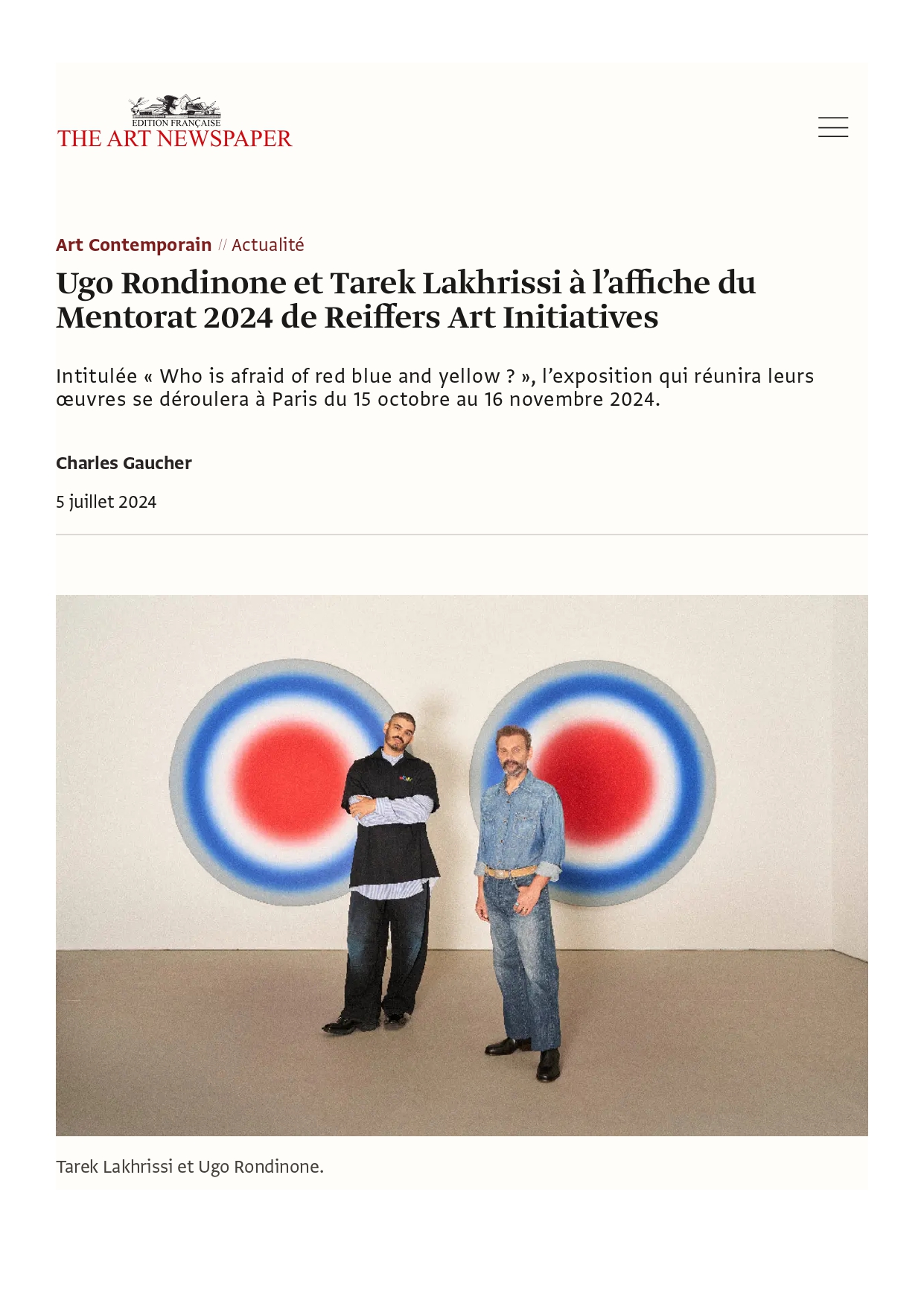 Ugo Rondinone et Tarek Lakhrissi à l’affiche du Mentorat 2024 de Reiffers Art Initiatives Ugo Rondinone et Tarek Lakhrissi à l’affiche du Mentorat 2024 de Reiffers Art Initiatives Ugo Rondinone et Tarek Lakhrissi à l’affiche du Mentorat 2024 de Reiffers Art Initiatives